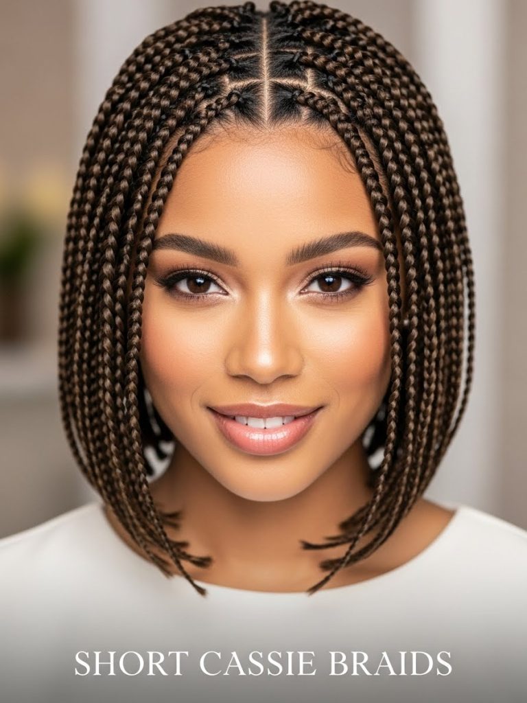 These braids stop around the neck or shoulders. They are light, easy to manage, and perfect for hot weather. Short Cassie braids are great for women who do not like heavy hairstyles.
