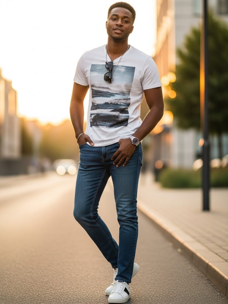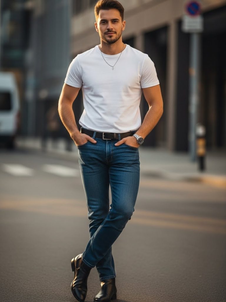Outfit Idea 1: Clean White T-Shirt with Dark Jeans