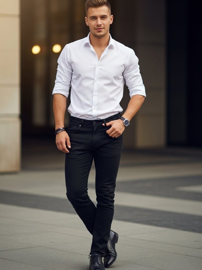 This is one of the strongest first-date outfits ever. A well-fitted white T-shirt and dark jeans show confidence without stress. Add clean sneakers or loafers. This look works for coffee dates, casual dinners, and walks. Simple but powerful.