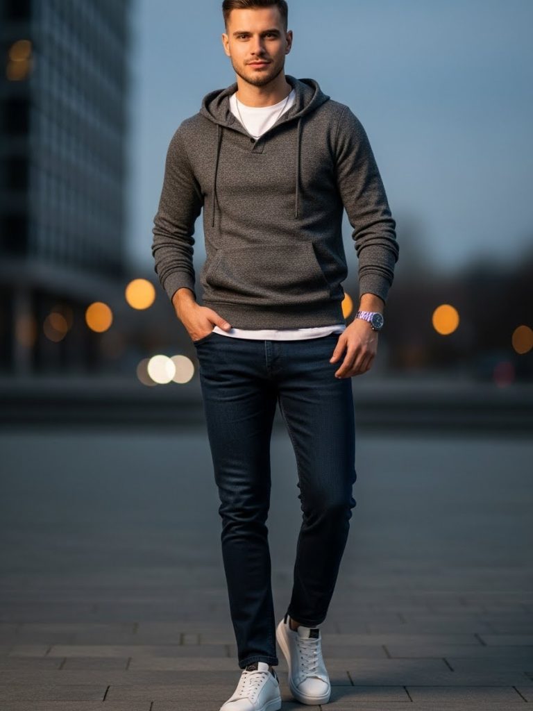 Outfit Idea 4: Hoodie with Fitted Jeans and Sneakers