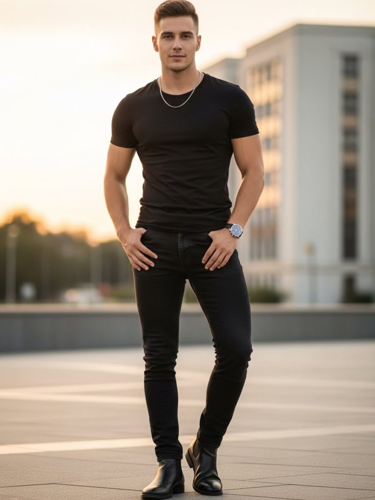 All-black outfits are timeless. Just make sure everything fits well. This look feels confident, calm, and attractive. Add a watch or clean shoes to finish it. Best for night dates.