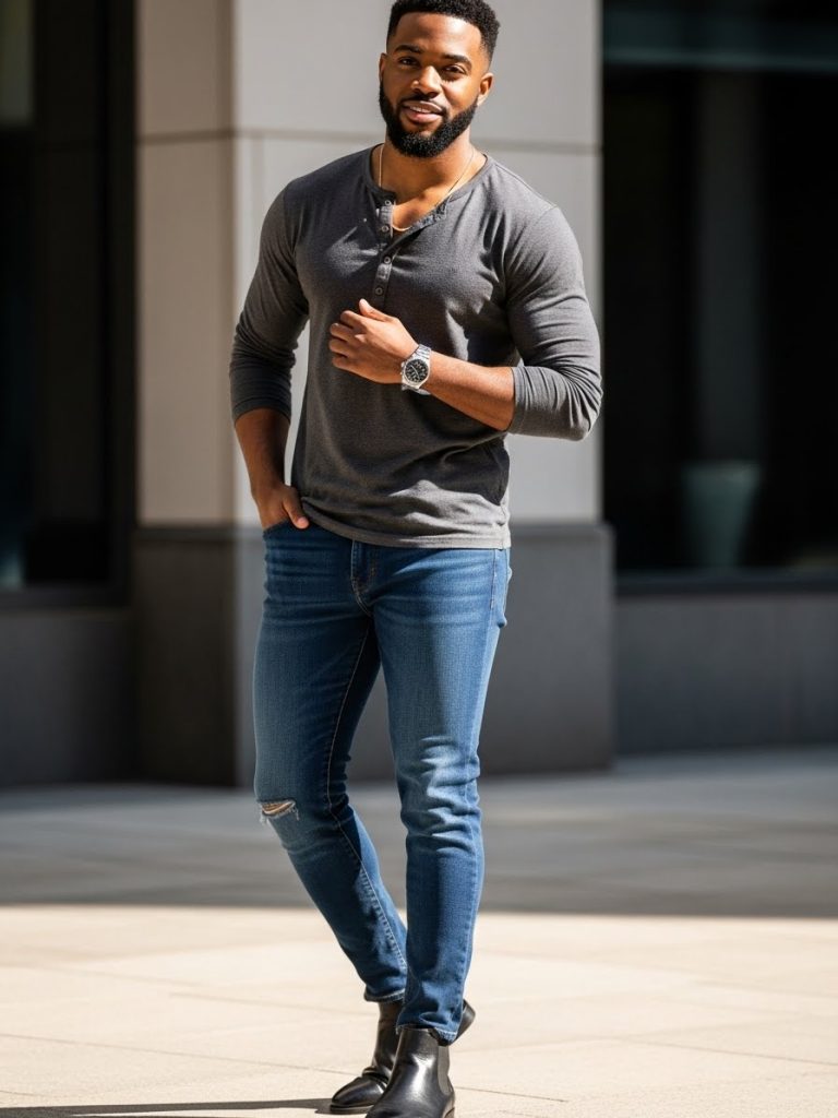 Outfit Idea 9: Henley Shirt with Slim Jeans
