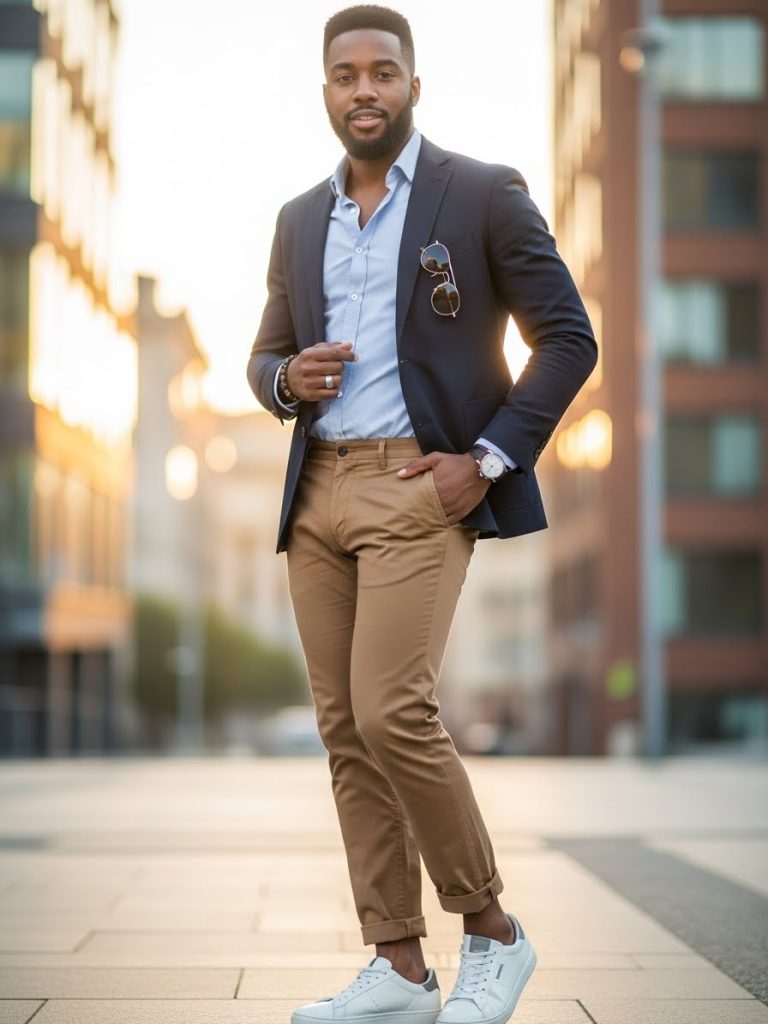 Shoes matter a lot. Clean sneakers can upgrade even simple outfits. Pair them with jeans and a shirt or polo. This keeps your look fresh and modern.