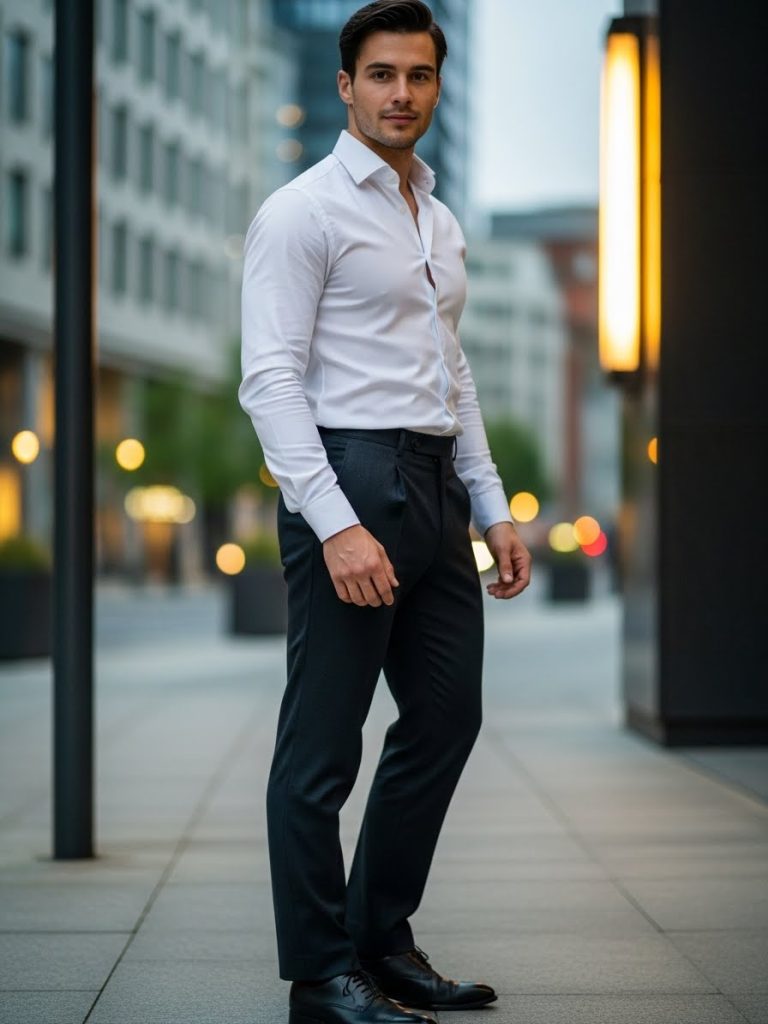 Outfit 2: White Button-Up Shirt with Dark Trousers
