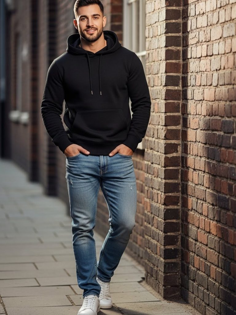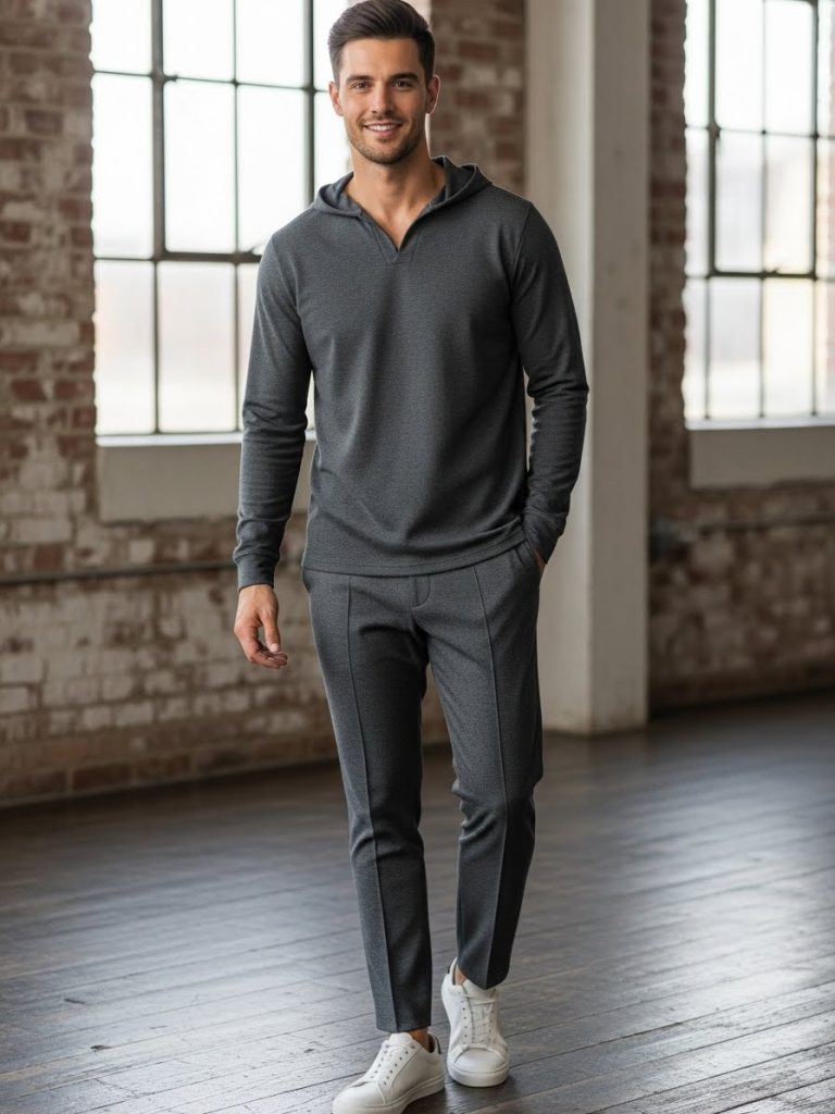 A minimal hoodie without logos gives a clean style. Tapered pants keep the outfit sharp. This look works well for casual workdays or meetups.