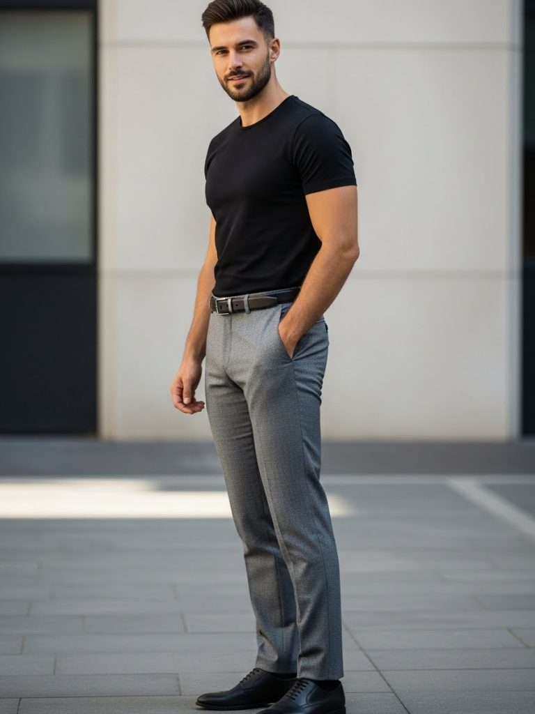 Outfit Idea 17 – Black T-Shirt with Grey Pants
