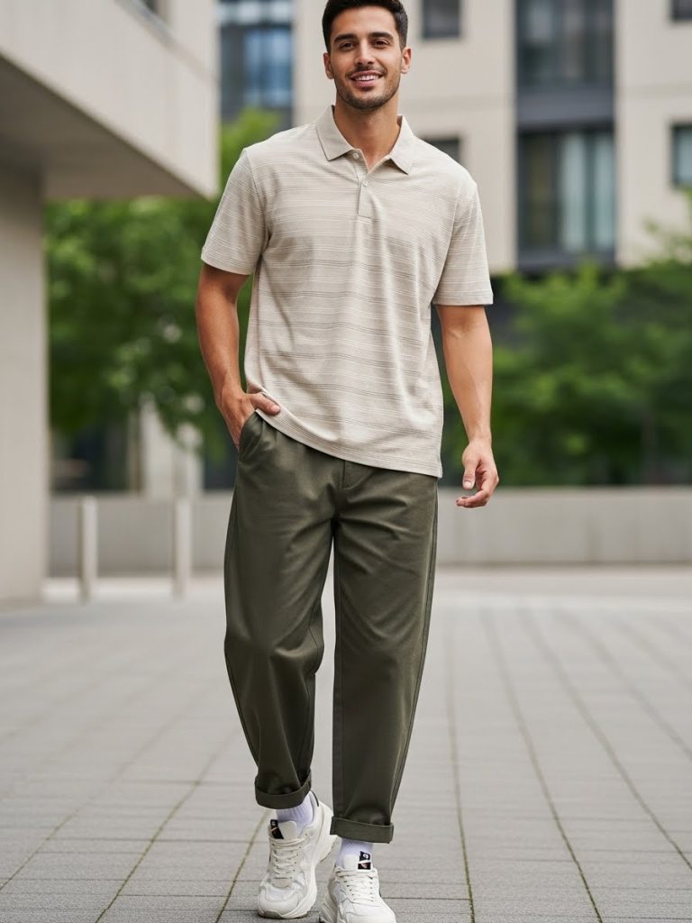 Outfit Idea 22 – Streetwear Polo Shirt with Loose Pants
