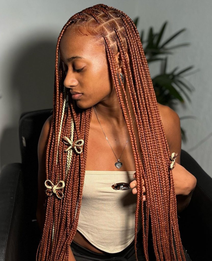 Knotless braids are lighter on the scalp. When done in two layers, they look full but still feel comfortable. This style is great for women who want long-lasting braids without pain.