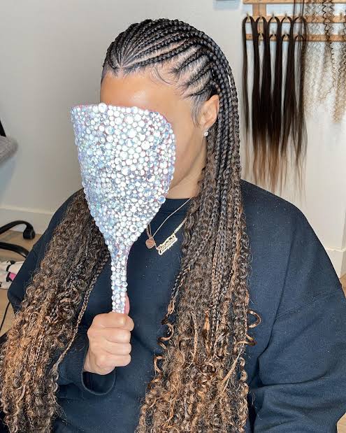 This style mixes traditional Fulani braids with a two layer layout. It often includes beads or accessories. It is perfect for women who love culture and beauty mixed together.