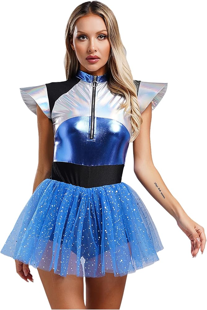 Silver dress, high boots, and futuristic accessories. It’s a cute alien-princess vibe that looks amazing in photos.