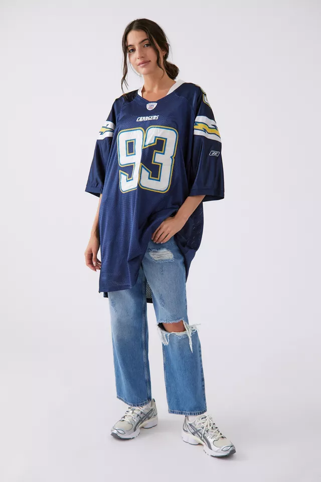 Style your jersey as a dress by wearing it with biker shorts underneath and letting the jersey hang loose. Add chunky sneakers and athletic socks pulled up high for a sporty, 90s-inspired look. Alternatively, wear your jersey as a top by tucking it partially into high-waisted jeans or a skirt. This creates shape and makes the outfit feel more intentional.